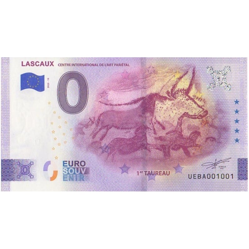 Billet souvenir 0 euro - Thème Lascaux - 1er taureau - Emis en 2025