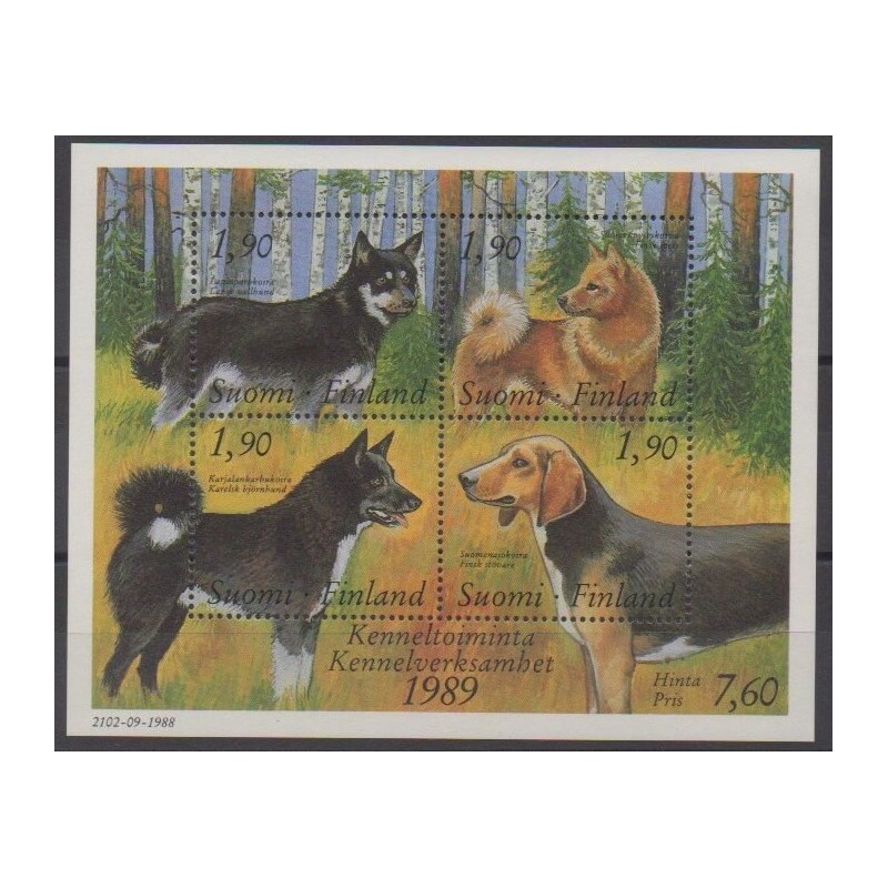 Azur Philatélie vous propose ce bloc-feuillet de Finlande de l'année 1989 sur les chiens (No BF5).Destinataire :