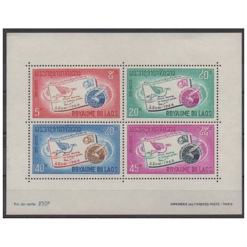 Azur Philatélie vous propose ce bloc-feuillet du Laos de l'année 1966 (No BF37).Destinataire :
