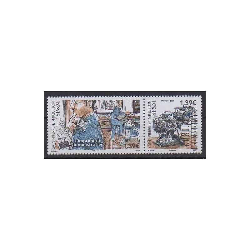 Azur Philatélie vous propose ce timbre de Saint-Pierre et Miquelon de l'année 2025 (L'imprimerie administrative, No 1363/1364).